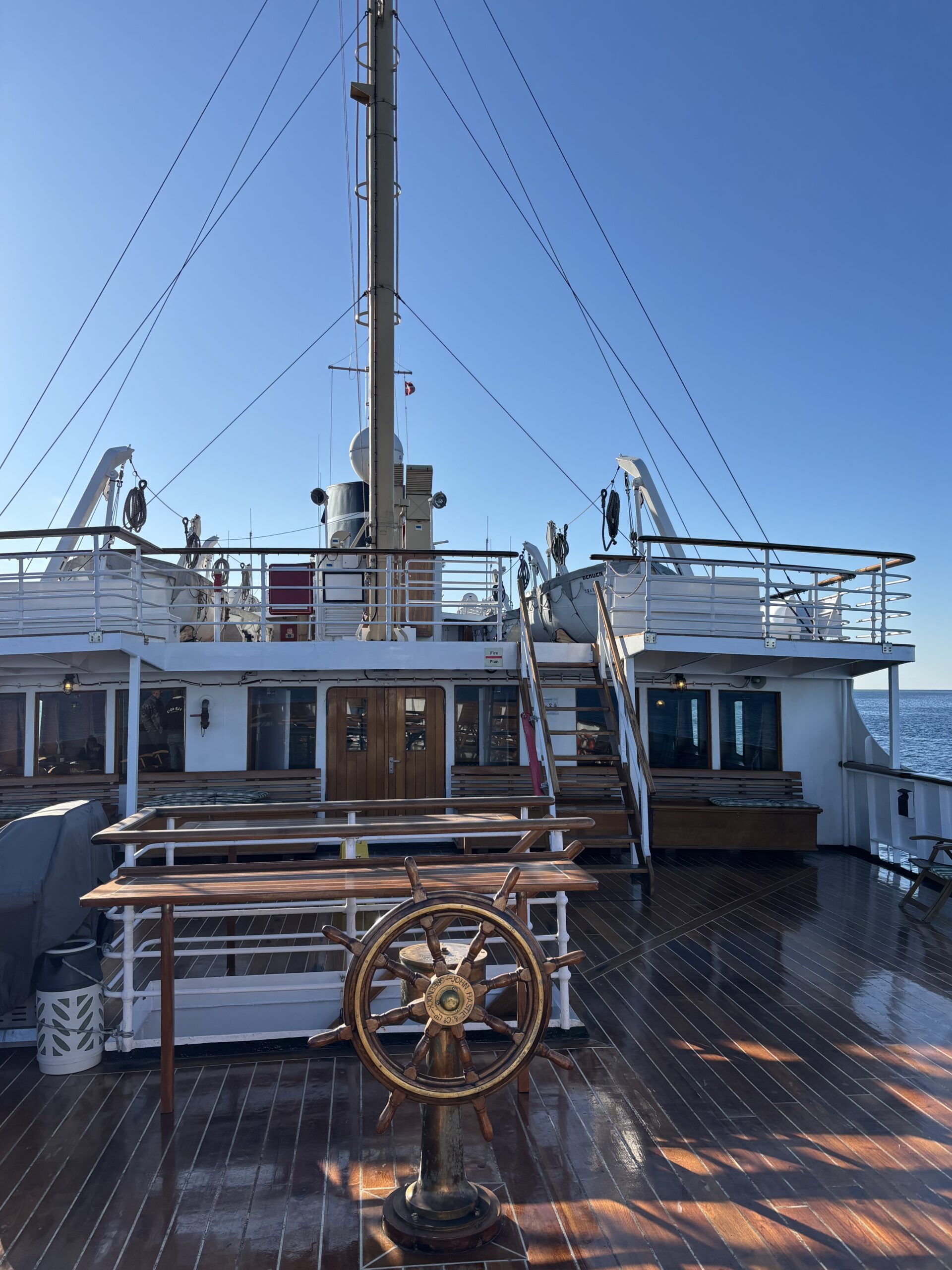 We are particularly pleased that the ship was designed from the outset to carry passengers and is equipped with six beautiful passenger cabins.