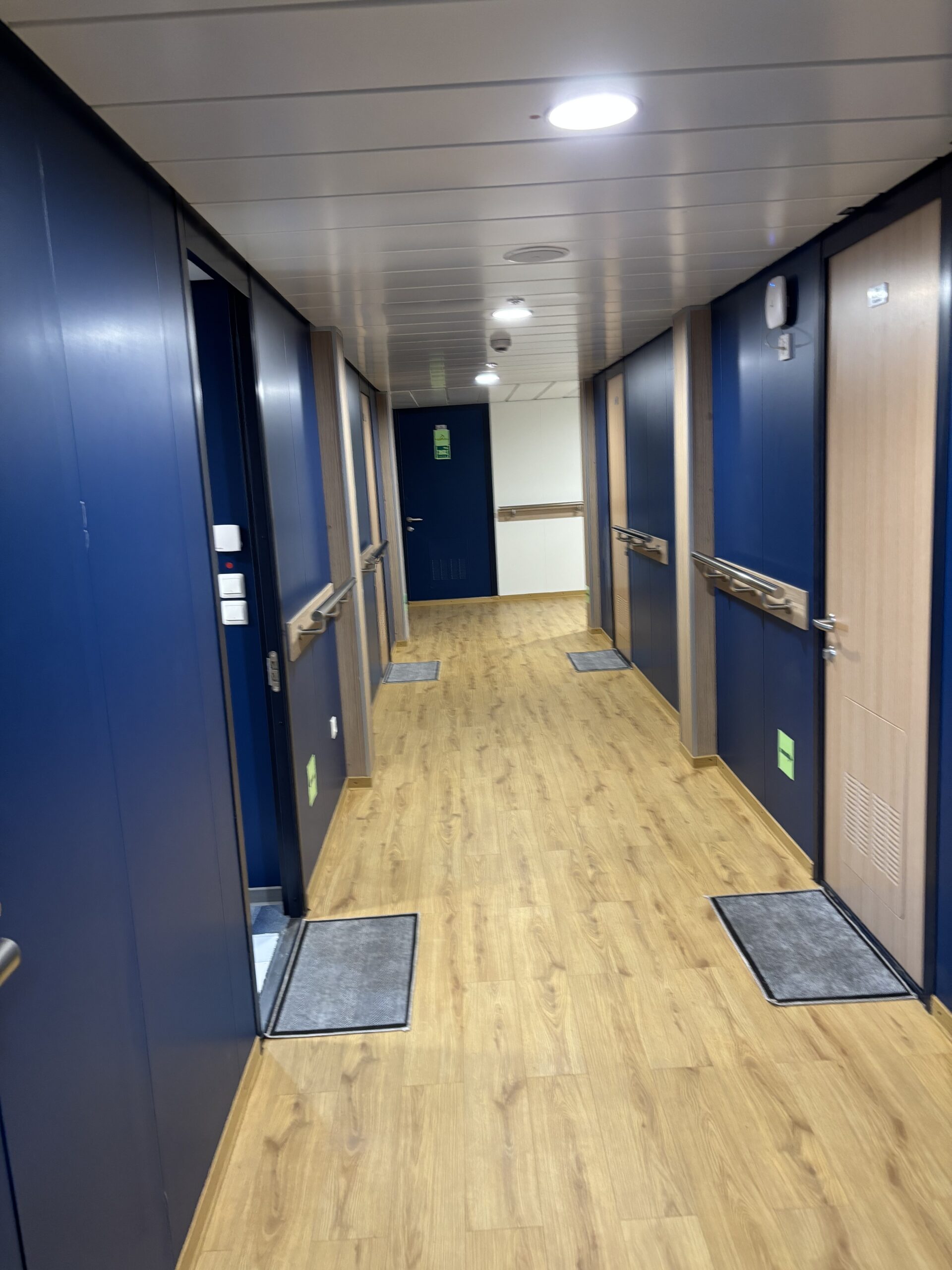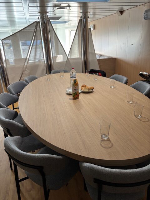 The mess hall for all passengers is located at the end of the long corridor between the passenger cabins. The spacious and beautiful lounge area for passengers is located opposite the mess hall and has very large, almost floor-to-ceiling windows that offer an incredible view of the sea.